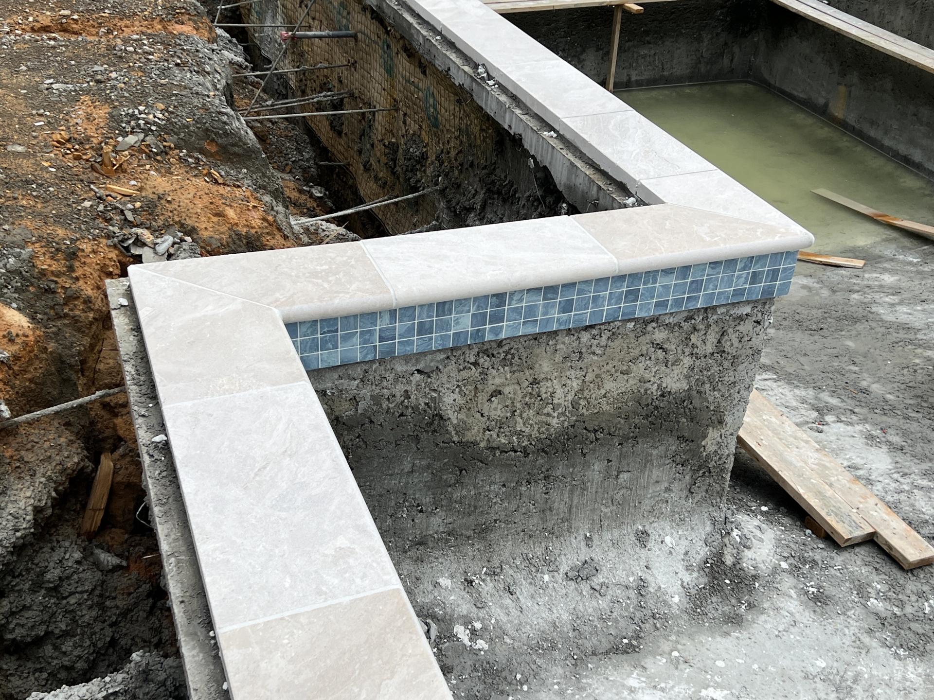 Decking plays a significant role in the overall visual appeal and functionality of a pool area. For this project, we installed 2200 sq/ft of Silver Travertine decking. This natural stone offers a beautiful, timeless finish and excellent durability, making it the perfect accompaniment to the new gunite pool.